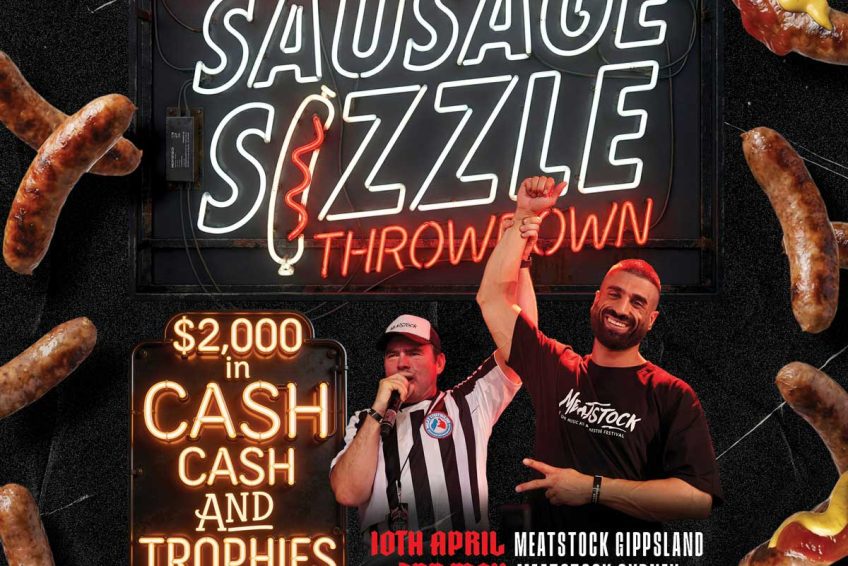 It’s 2026 and we’re ALL IN for this year’s Meatstock Sausage Sizzle Throwdown in Gippsland! Contestants have a frantic 3 minutes to eat as many sausages in bread as possible. Unlike any other competition, contestants have to construct their own sausage in bread one at a time, then saucing at least 50% of the sausage before slamming it down as quickly as possible. Each sausage in bread can only be eaten one at a time, so technique is key!